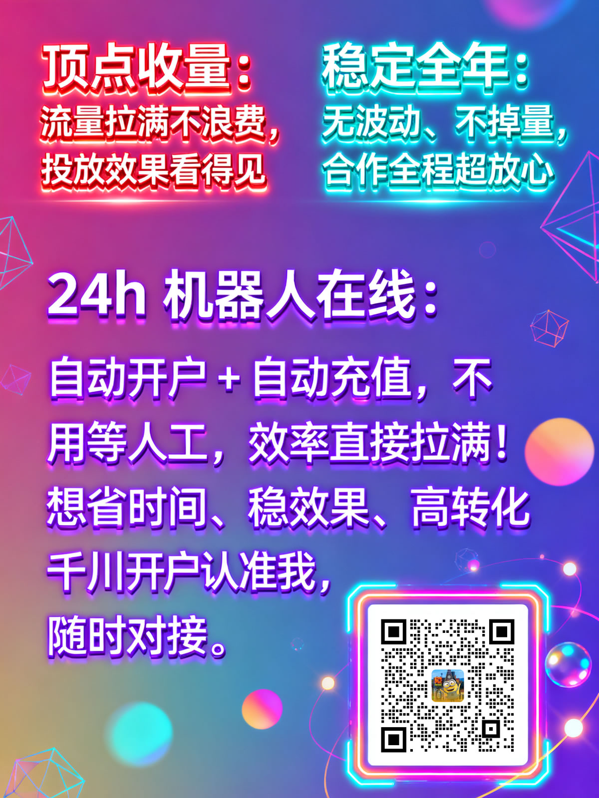 我提供千川开户找我!顶点收量 + 全年稳,24h 机器人自动搞定...