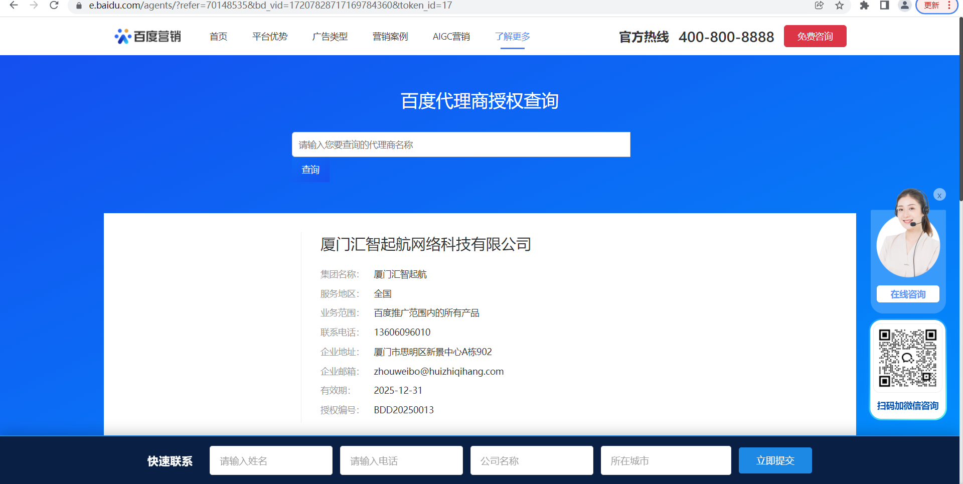 服务商地区:福建+武汉+济南+重庆 全行业可开